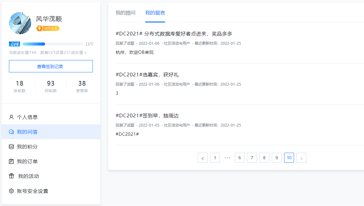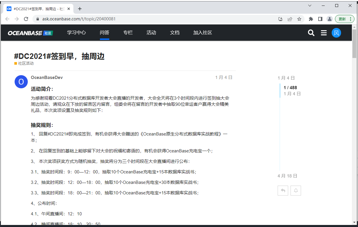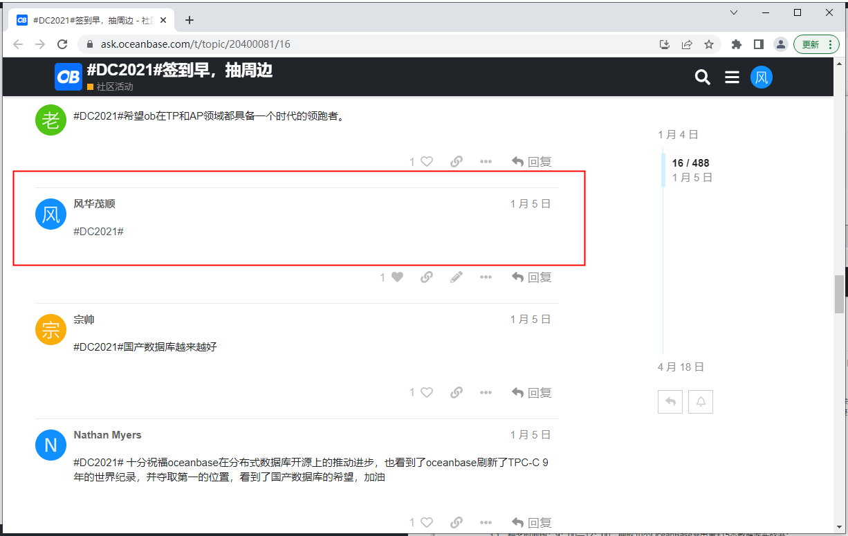 第一次在社区留言是在社区活动板块留言 #DC2021#
