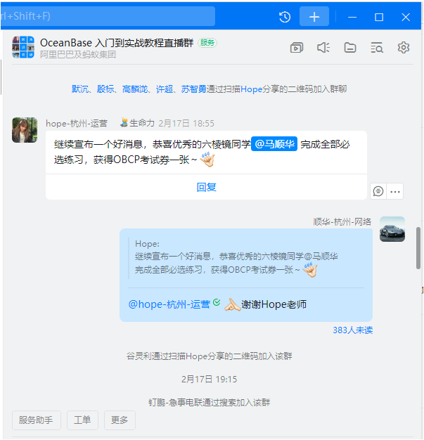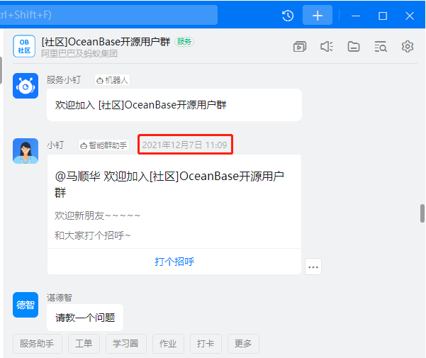 2021年12月07日:首次加入钉钉[社区]OceanBase开源用户群。