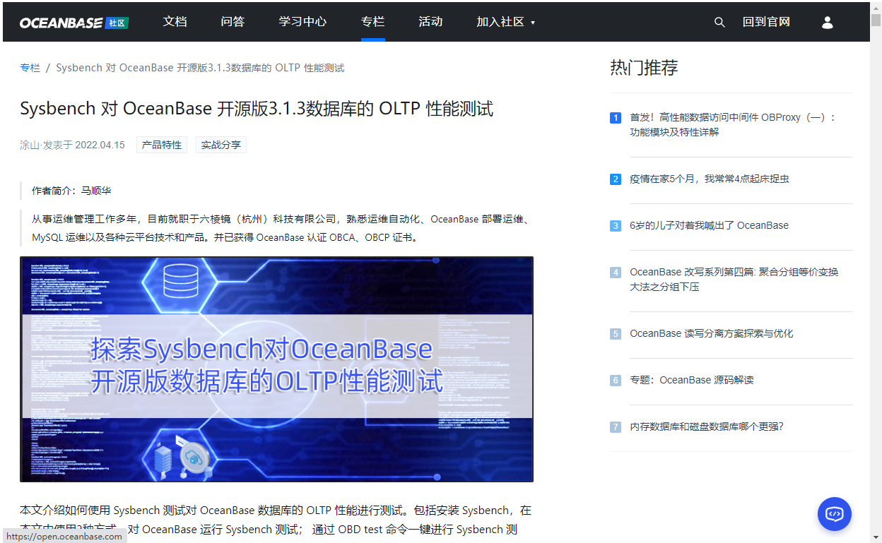 - 客户实践:客户使用 OceanBase 社区版/商业版实践总结。