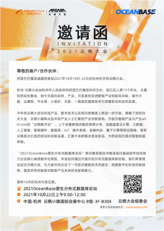 第一次以客户代表身份受邀报名参加阿里的云栖大会2021 OcanBase 原生分布式数据库论坛