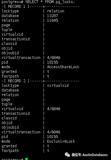 5 SELECT * FROM pg_locks;