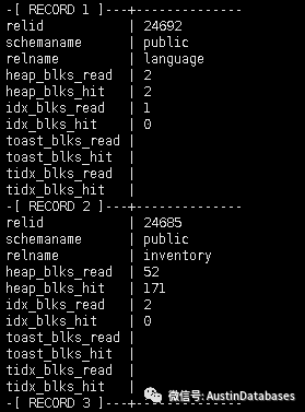 I/O输出有助于理解如何在幕后访问数据。列“heap_blks_read”表示为该表读取的磁盘块的数量,而“heap_blks_hit”表示从该表的内存中读取的缓冲区块的数量。这有助于了解访问表的查询是必须经常访问磁盘,还是从内存中获取数据。表上的索引统计信息显示了' idx_blks_read '和' idx_blks_hit '列的相同信息。