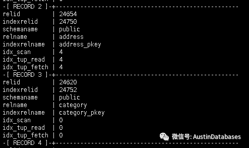 与对应的表非常相似,该表包含关于索引的特定信息。每个索引一行,这个表显示了使用' idx_scan '列扫描索引的次数,使用' idx_tup_read '读取了多少元组,以及使用' idx_tup_fetch '实际获取了多少活动行。