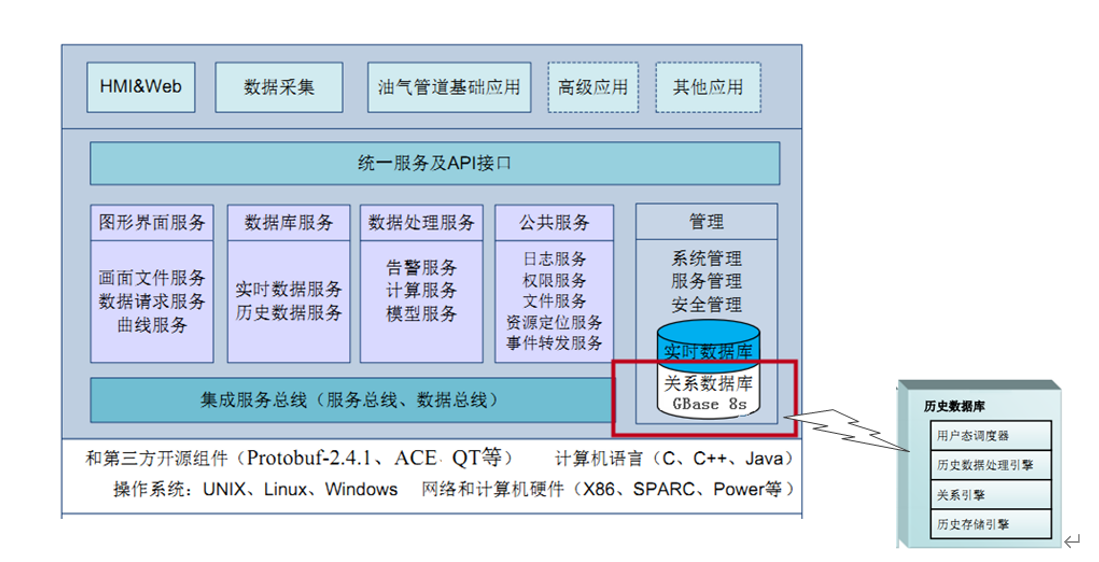 关系数据库层采用了GBase 8s,负责存储SCADA系统的静态数据、历史数据缓冲和系统日志等,同时提供海量历史数据管理和查询功能。