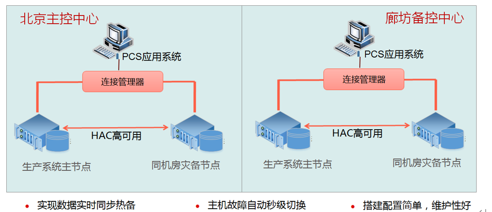 本项目部署于两个机房:北京主控中心和廊坊备控中心,都采用GBase 8s