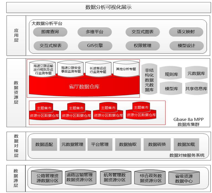 3、数据资源层:包括数据仓库,以及共享信息库、规则库、模型库、元数据库、非结构化数据元数据库等支撑库。其中GBase