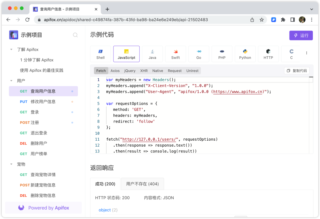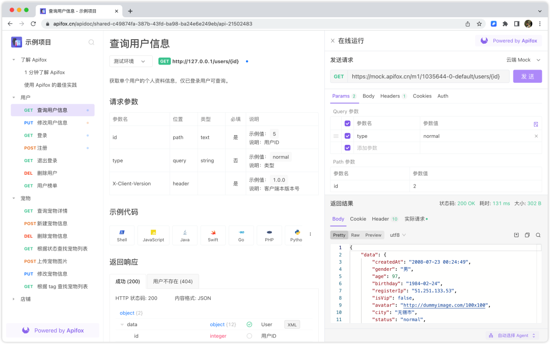 只要把 Swagger 的 URL 填到 Apifox 里面去,Apifox 就会自动导入 API 定义,然后就能生成这个好用的文档!