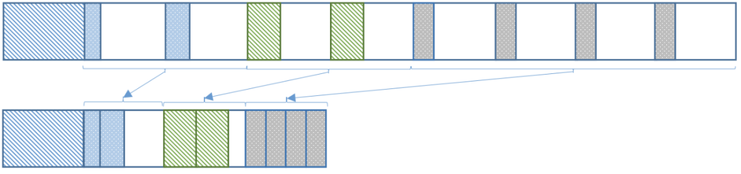 为进一步提升压缩效率,通常会进一步压实(compaction)空间,压实后数据存储分布如下: