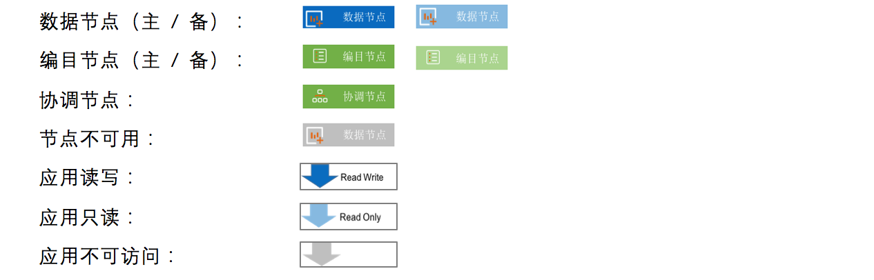 备中心,提供只读访问能力,一旦将来主中心发生故障,也必须具备读写能力,所以配置一组全量的备节点(切换后即成为主节点),以及一组编目节点;