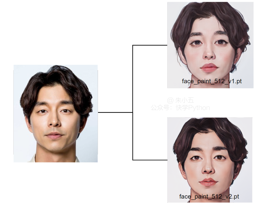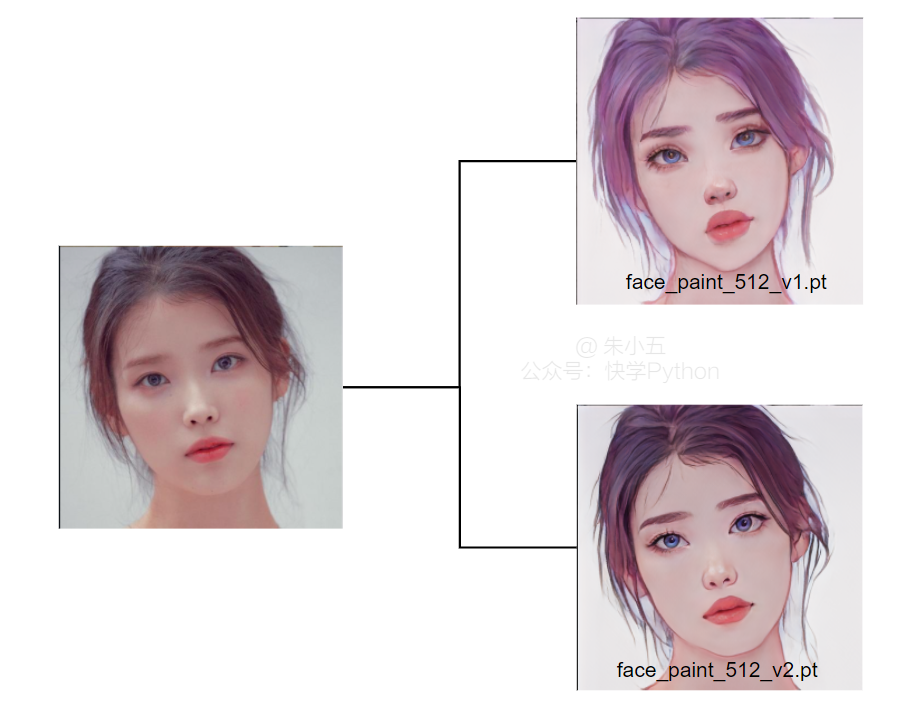 由于是像实现人脸动漫迁移,所以我分别使用了face_paint_512_v1.pt