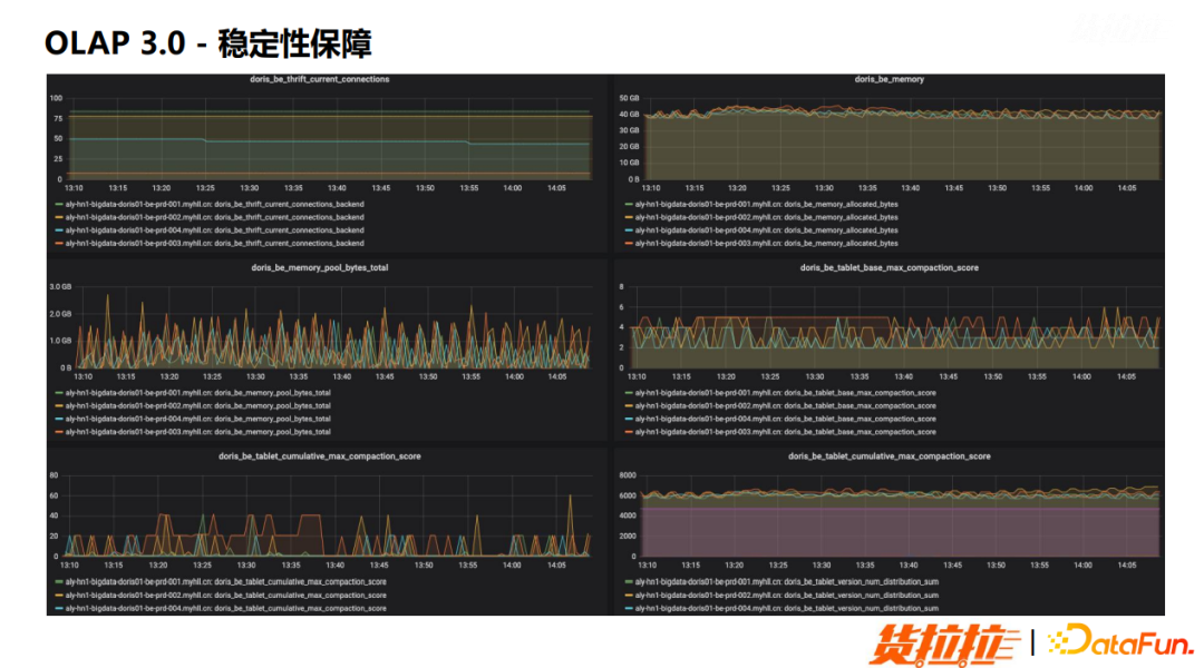 打开 Profile。Doris 对于查询的性能分析具有非常好的 Profile 文件,这一点是非常赞的!我们可以看到各个算子在每一个阶段查询耗时以及数据处理量,这方面相比于 Druid 来说是非常便捷的! 调大单个查询的内存限制,同时把 BE 上的执行个数由 1 个调整成为 8 个,并且增加了 Compaction 在单个磁盘下的数据量。对于 Stream Load,我们把 Json 格式的最大的内存由 100 兆调整成为 150 兆,增大了 Rowset 内 Segment 的数量,并且开启了 SQL 级和 Partition 级的缓存。
