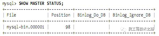 重启master,运行SHOW MASTER STATUS,输出如下: