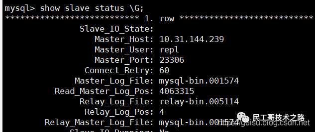 运行SHOW SLAVE STATUS查看输出结果: