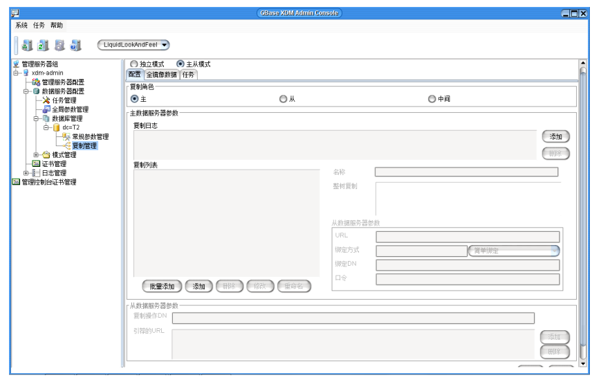 GBase XDM Cluster 数据节点之间采用 master-slave 模式实现主从复制, 仅仅复制变化部分从而减少了网络通讯量。 GBase XDM Cluster 主从复制支持的复制特性包括:一主多从。复制更改 总是从 master 到所有的 slave,当一个 slave 接收到更改时,它重新定向操作 到 master。一旦 master 更改被完成,master 将把更改的信息再传到 slave。 因此对每一个 slave,总和 master 保持同步,数据的一致性得到了保证。
