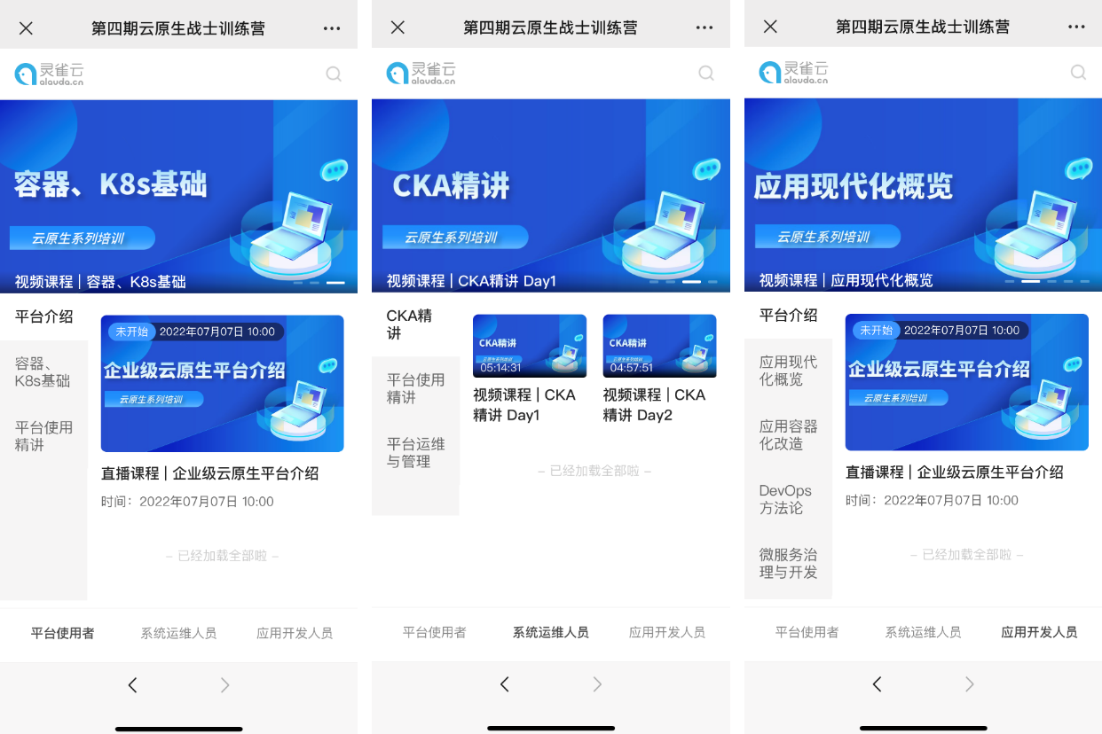 担心课程太通用,没有针对性?我们对于企业中云原生平台的使用者、系统管理员、运维人员、应用开发人员、IT架构师等不同角色人员,制定了不同的学习路径,方便针对性学习。