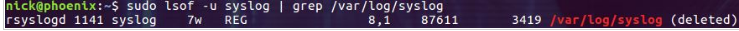下面的 demo 演示如何通过 lsof 命令恢复被误删的 /var/log/syslog 文件。