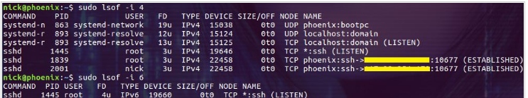 -i 选项默认会同时输出 IPv4 和 IPv6 打开的文件: