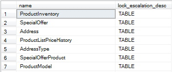 select name, lock_escalation_desc from sys.tables