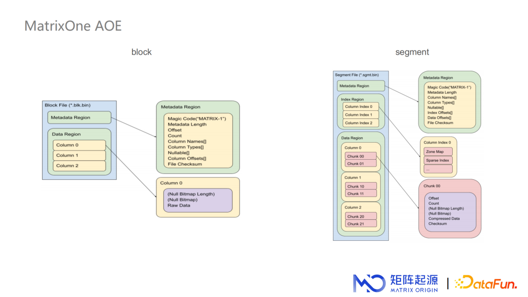 此外Segment的索引区域存放着一些和AP相关的索引,如Sparse Index 或Zone map 等,此外还有一些元数据。