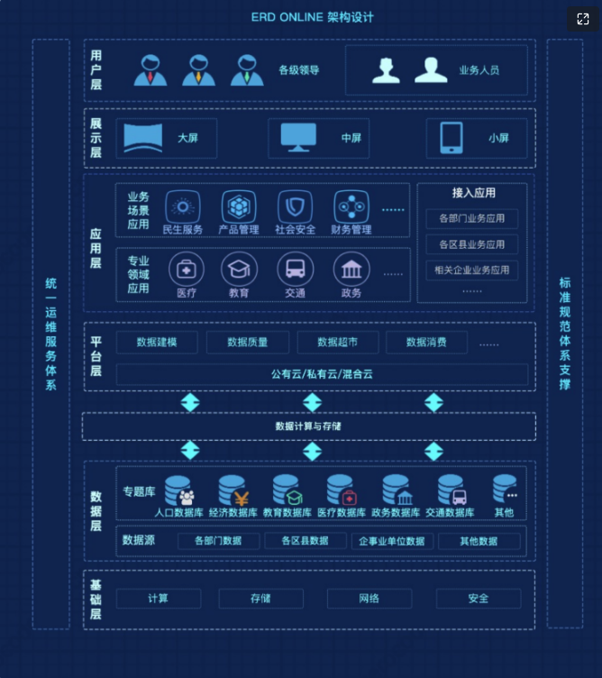 ERD 是Entity-Relationship Diagram的缩写,中文意思为实体关系图,也被称为 ERD、ER 图、实体联系模型、实体联系模式图或 ER 模型,是一种用于数据库设计的结构图。ERD Online为开发者提供一站式的数据库结构设计、版本管理、执行 sql、逆向解析、文档生成功能。