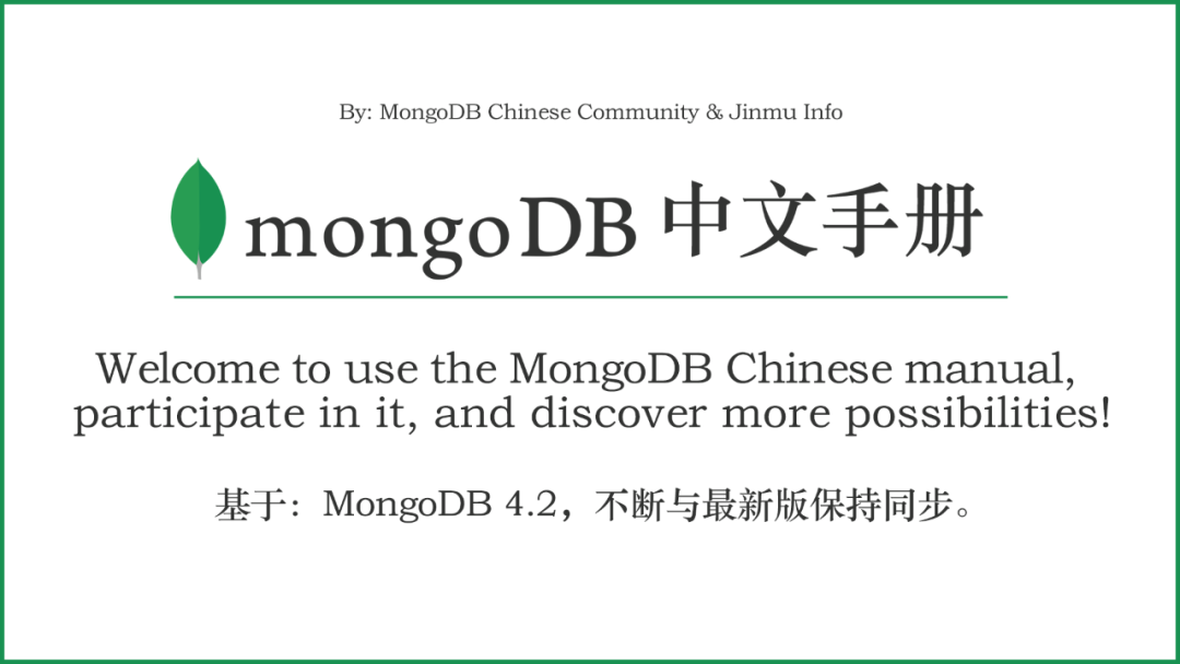 MongoDB中文手册翻译正在进行中,欢迎更多朋友在自己的空闲时间学习并进行文档翻译,您的翻译将由社区专家进行审阅,并拥有署名权更新到中文用户手册和发布到社区微信内容平台。点击下方图片即可领取翻译任务——