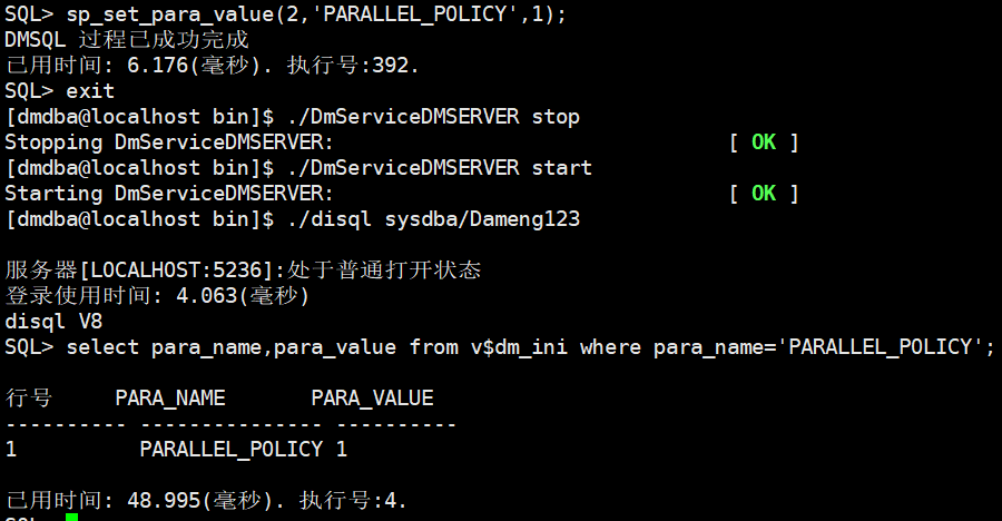 SQL> select para_name,para_value from v$dm_ini where para_name='PARALLEL_POLICY';