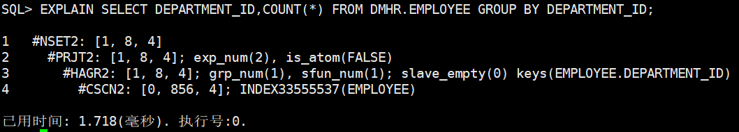 SQL> EXPLAIN SELECT DEPARTMENT_ID,COUNT(*) FROM DMHR.EMPLOYEE GROUP BY DEPARTMENT_ID;