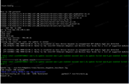 重启后,服务器自动从光驱进行ISO镜像加载及EX710网卡固件升级,不需要手动干预,当出现类似如下图打印消息,表示固件升级完成。