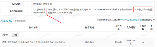 R5930 G2 服务器(BMC版本3.15.200及以下)更换主板后产生PCIE拓扑改变告警,如下图所示:
