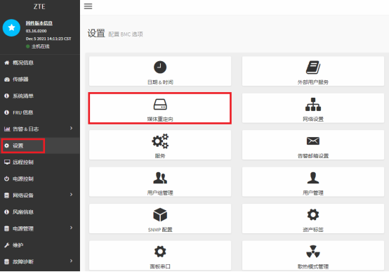 在媒体重定向页面,选择Vmedia实体设置,如下图所示。