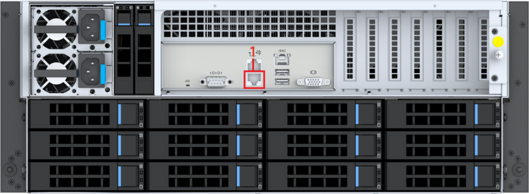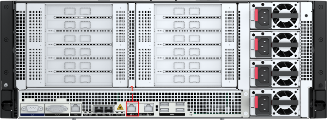 使用服务器的共享口登录,各服务器共享口如下: R5300 G4机框后视图,1号为共享网口。