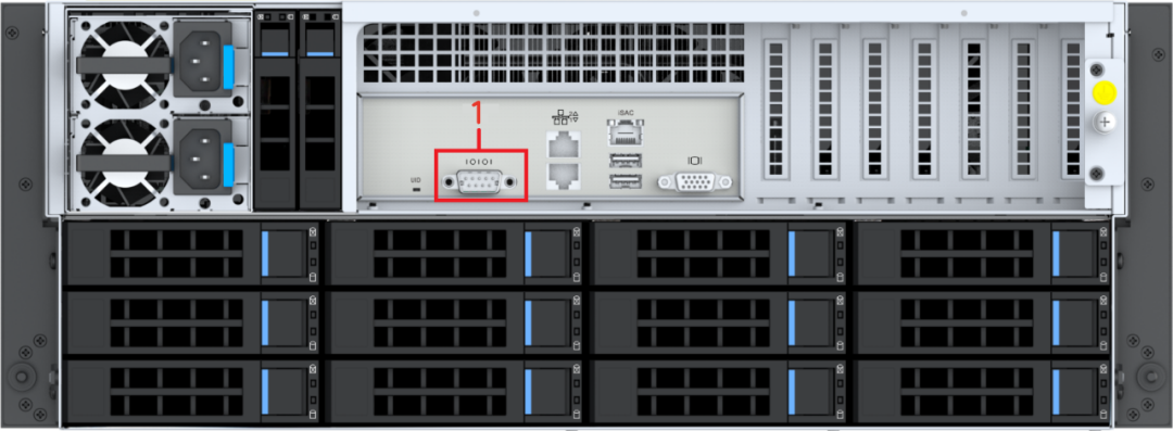 电脑安装好远程登录工具软件(如Putty、MobaXterm、Xshell等软件)及驱动程序。 (可选)准备好服务器配套DB9母头转DB8母头转接线,USB转串口线。 * 调试电脑自带DB9串口接口不需要准备。 服务器UID灯长按8s,UID灯蓝灯快闪,服务器打开串口模式,使用串口线连接电脑和服务器的串口。 3个型号服务器的RS-232串口