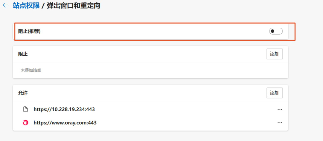 将默认的阻止(推荐)选项调整成允许(调整按钮即可)。