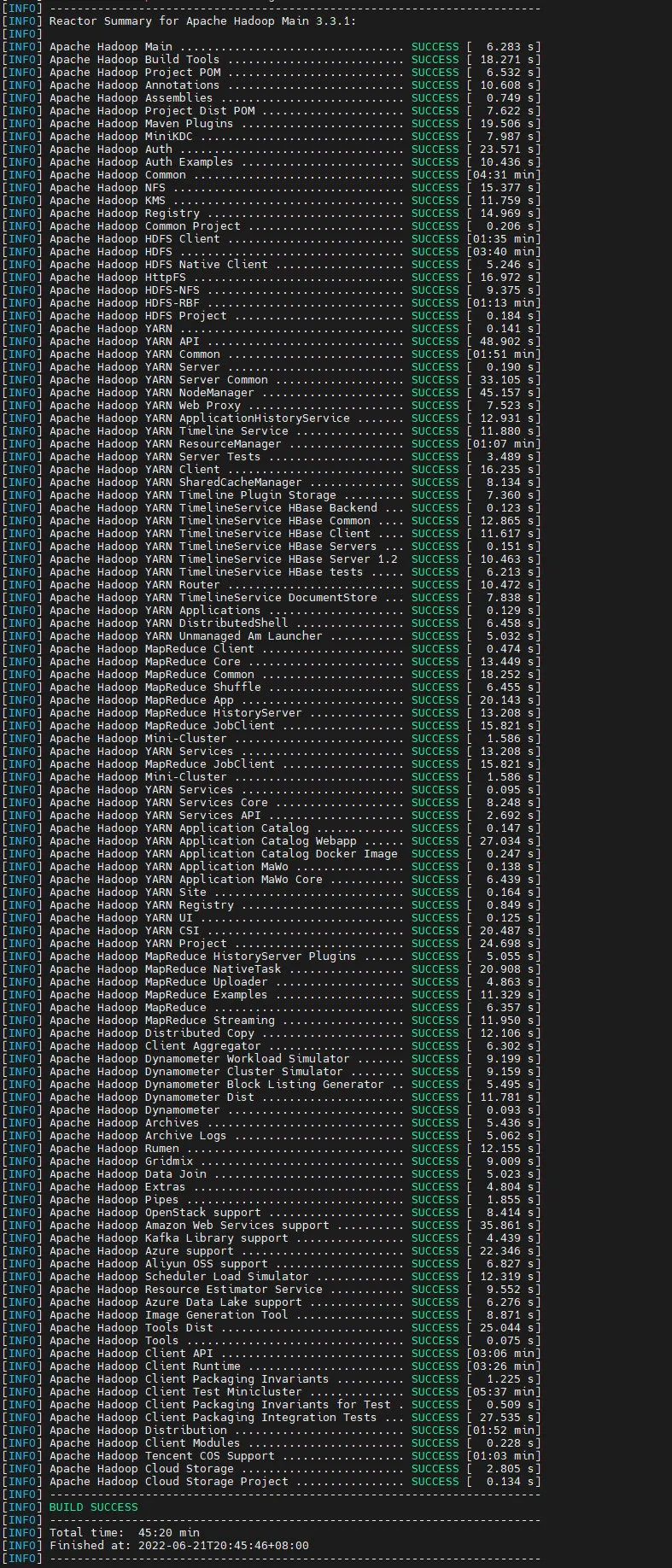104[INFO] Apache Hadoop Client Runtime ....................... SUCCESS [03:26 min]
