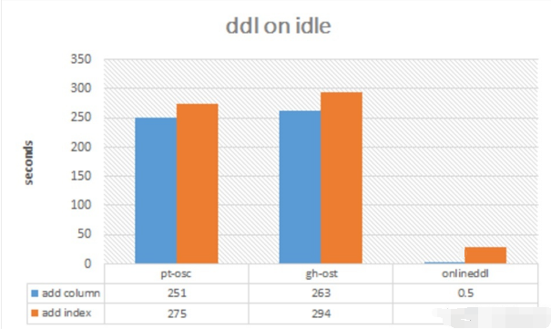 从图中可以看出,Online DDL的性能明显好于2种第三方工具。