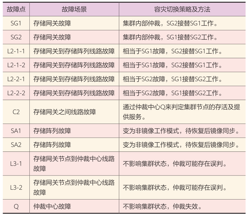 Q表示SG1和SG2组成集群的仲裁中心,分别以以太网络与两个存储网关相连接。