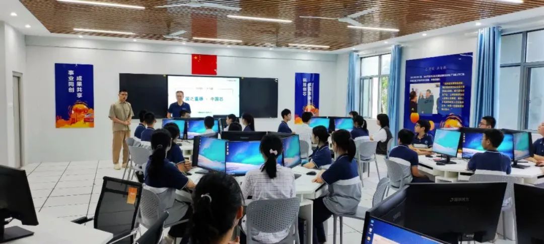本次教研活动在江西省标杆示范电子化科创教室举办,该教室部署了40余台基于银河麒麟操作系统V10和飞腾腾锐 D2000处理器和的同方国产化整机作为教学终端。为了以自主核心技术服务中小学科创教育数字化、课后服务精细化,提升学生核心素养,培养自主创新科技后备人才,麒麟软件、飞腾、中望软件、金山办公、同方、极域、太尔时代等企业,在教研活动中导入3D设计创意元素,结合信息科技新课标,融入思政教育,打造 “文化自信+科技创新” 为主题的教研实践。同时,该教室可进行国产化信息技术基础、办公软件、初级编程等多种教学,有助于青少年学习、体验计算机科学知识,培养自主创新意识,感受爱国主义情怀。