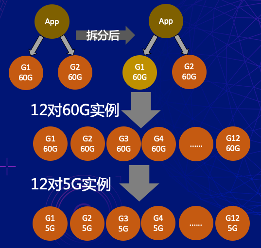 CRedis水平分拆上线后,DBA将现存的绝大部分超过15G的实例都拆分成更小的实例,在一段时间内缓解了大内存实例的运维治理压力。但随着Redis规模的快速增长,不断有大的实例集群出现,此外CRedis水平分拆的缺点也逐渐暴露出来:1)持续的周期很长,对多个 Group 进行拆分的话,每个Group的数据需要同时复制几份同样的实例。比如60G的某个实例(图3),如果想拆到5G一个,那么下级的Group必须有12个,而拆分要先将该实例的数据先同步为12个60G的实例,再根据key的命中规则清理该12个60G的实例中不会命中的key,最终演变成12个5G的实例。一般60G的group实例拆分需要3个小时-6个小时,如果一个集群的分片非常多,加上观察对业务影响的时间,可能要持续上几天或一两周,并且只能是有人值守的串行操作。2)拆分过程中需要2次迁移,如上面所说的,拆分中中间态实例对于内存的要求是非常大的,拆分完成后对内存的需求会急剧下降,因此每次拆分都涉及到2次迁移,尽管迁移不会影响业务,但对于执行操作拆分的运维人员来说,心智负担比较大,而且一不小心也会导致线上事故。3)拆分后无法还原回去,也就是说假设业务分拆后收缩,对Redis的需求变小了,但它实际拆分后的分片还在那边,所申请的空间还并没有释放掉,客观上浪费了资源,降低了Redis总体的利用率。4)只支持扩容,不支持缩容,这点上面也提到了,除了一些集群过大需要分拆外,还有一些申请远超需求的实例需要缩容,而水平分拆对于这点无能为力。5)拆分一次,就多一次的性能损耗,因为需要多计算一次hash,虽然耗时不大,但是对于性能敏感的业务还是有影响。由此可见,水平分拆的方案虽然解决了实例过大的问题,但不能缩容的弊端也逐渐凸现了出来。尤其是在今年因疫情影响需要降本增效的背景下,一方面资源比充足,一方面宿主机上跑的都是无法缩容的实例。那么是否有更好的解决方案呢?答案是有的。