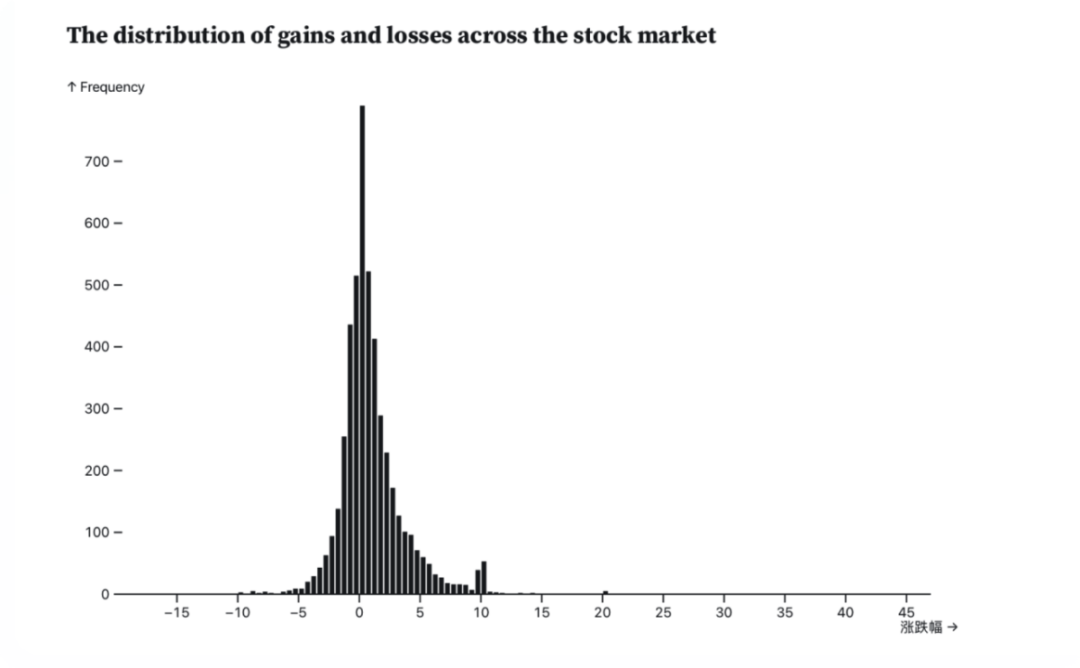 实时展示选出的10个股票的涨跌幅分布The distribution of gains and losses across the stock market