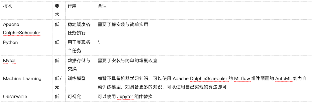 了解如何使用Apache DolphinScheduler构建一个选股系统。 了解Apache DolphinScheduler灵活简单编排MLOps场景下各个模块的方法。 了解Apache DolphinScheduler MLflow组件赋予用户的0成本使用机器学习能力。 了解Observable这个强大的可视化产品的能力,以及与Apache DolphinScheduler的结合使用。