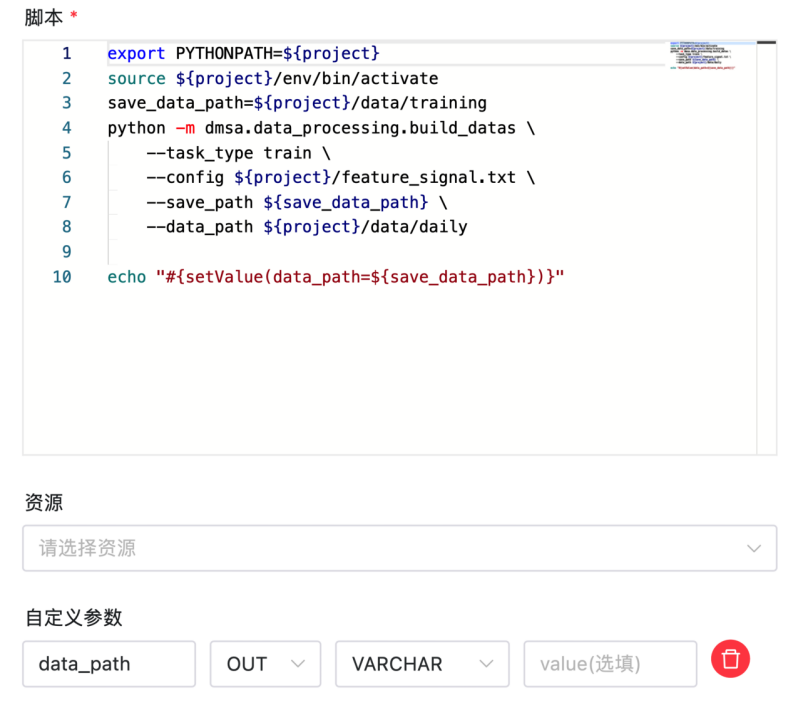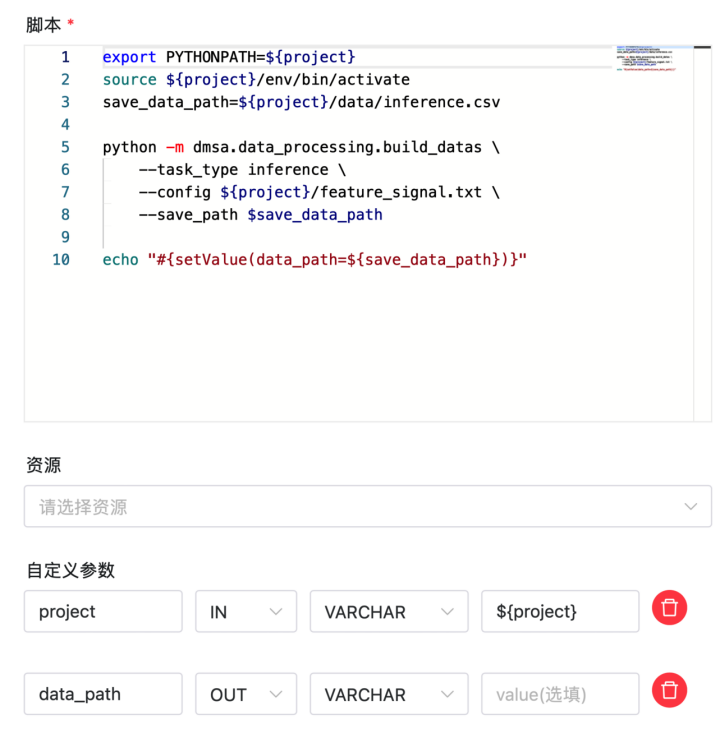 python -m dmsa.data_processing.build_datas \--task_type inference \--config ${project}/feature_signal.txt \--save_path $save_data_pathecho "#{setValue(data_path=${save_data_path})}"