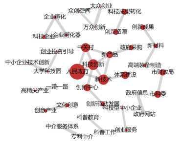 通过关系网络图展示文本挖掘的结果,发现政策文件中的重点领域和关键词