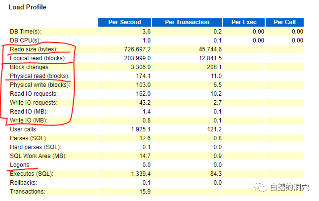 因为报告的跨度可能会不同,因此建议对于这种值,增加一列,就是平均一分钟产生了多少秒的活动,这样时间长了,就可以形成一些基线,便于DBA判断活动的大小或者是否正常。