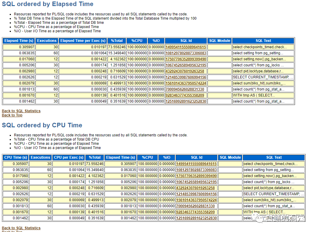 实际上PG的TOP SQL维度和Oracle差别比较大,PDR报告里把这些归类为和Oracle类似的维度,也是比较贴心的。