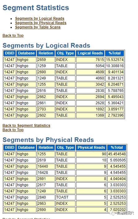 最后一节是TOP SEGMENT,不过内容只有逻辑读,物理读和表扫描的。如果能加入锁,热块的内容就更完美了。由于没有加压,所以这份PDR报告只是一个样板,没法做深入的分析。不过这样一份报告对于DBA了解数据库的运行状况,还是有很高的价值的。我想瀚高今后会把这份报告做的越来越好。如果瀚高能把这份报告的插件开放出来,让其他PG数据库使用那就更好了。