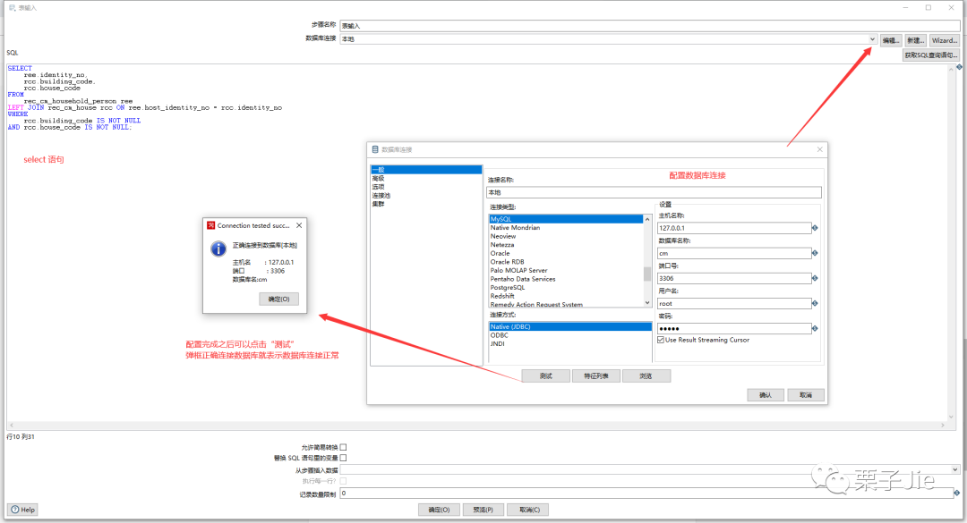 除了查询逻辑之外,其他转换为简单的表输入,表输出 不再赘述