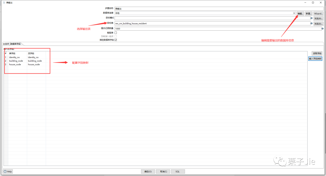 字段选择:选择需要的目的列到目标表,并且量表的对应字段不一样时可以用来做字段映射