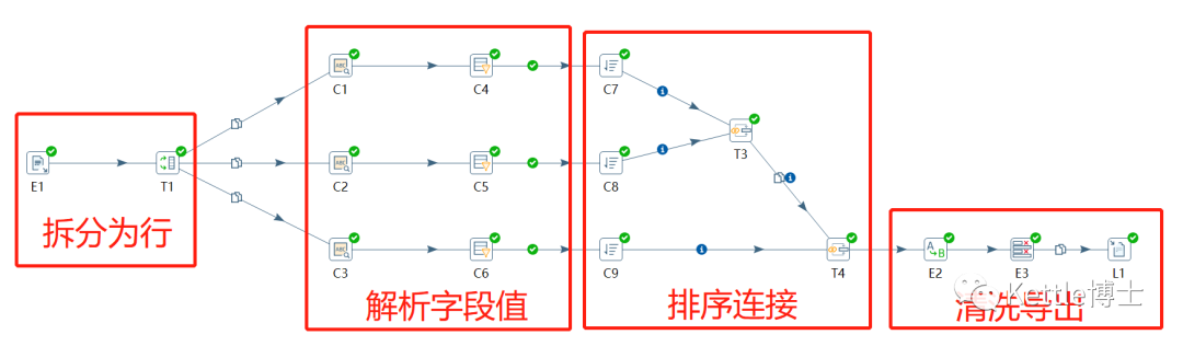 如果列名都是动态的,这显然超出了以行集为根基的Kettle处理能力。所以首先我们需要将图1中的数据,以逗号为分割,拆分为行。