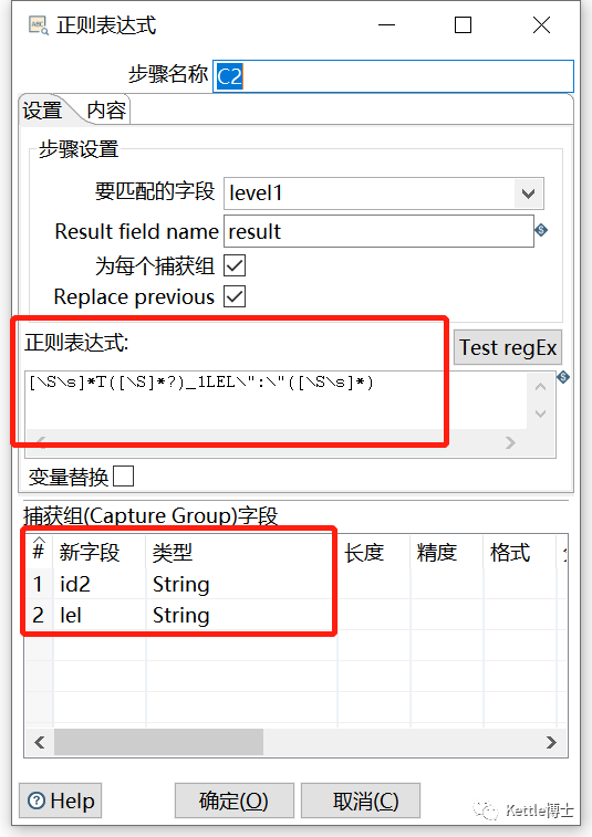 注意这个步骤的表达式必须全部匹配整个文本,才能解析出各组的值。