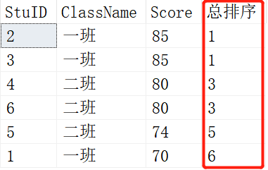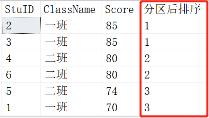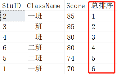 SELECT *,ROW_NUMBER() OVER (PARTITION BY ClassName ORDER BY SCORE DESC) 班内排序,ROW_NUMBER() OVER (ORDER BY SCORE DESC) AS 总排序 FROM Scores;
